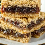 - Layer it up: Press half the oat mixture into a greased 8×8″ pan. Spread date filling evenly, then top with remaining oat mix.