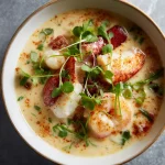 Creamy, hearty, and rich with fresh Atlantic seafood, Nova Scotia seafood chowder is a coastal classic that brings the warmth of maritime kitchens to your table. Packed with tender chunks of haddock, shrimp, scallops, and lobster (or crab), this chowder blends comfort and elegance in one satisfying bowl.