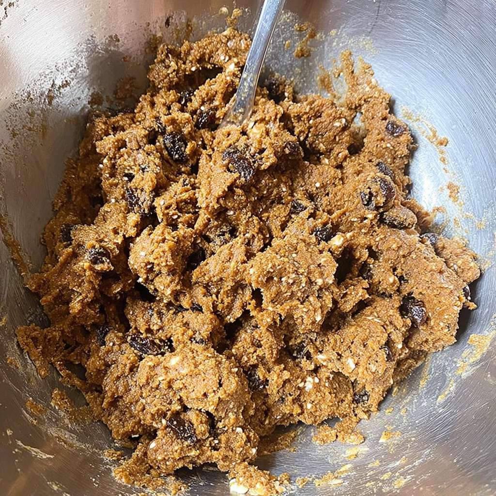 2. Add the raisins: Stir them into the flour mixture so they’re evenly distributed.